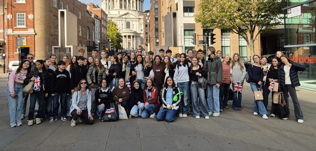 An diesem Tag ging ein großer Traum meinerseits und vieler anderer in Erfüllung. Wir hatten die Möglichkeit, einen Tag in einer der lebendigsten, vielseitigsten, historischsten und modernsten Städte der Welt zu verbringen: London. Ich kannte sie bis vor kurzem nur aus Büchern oder sozialen Medien und auf einmal waren wir da. Bei dem O2-Stadion liefen wahrscheinlich schon die ersten Proben für das Lady-Gaga-Konzert, während unser Weg uns weiter nach unten führte. Nach einigen Stationen mit der Tube (in der es komplett überfüllt war), stiegen wir aus und ab da war ich endlos glücklich. Mit dem Big Ben direkt hinter uns schossen wir die ersten ikonischen Fotos und machten dann einen kurzen Stopp auf der Brücke. Von hier aus sahen wir die Themse, die unter uns weiterfloss, das London Eye und viele weitere Brücken. Mehrere Doppeldeckerbusse fuhren an uns vorbei und auch wenn es in Düsseldorf ähnlich aussehende Touristen-Busse gibt, war das für mich ein Anblick, der für immer in meiner Erinnerung bleiben wird. Auch wenn es etwas anfing zu nieseln, konnte meine Laune nicht mehr schlechter werden.
