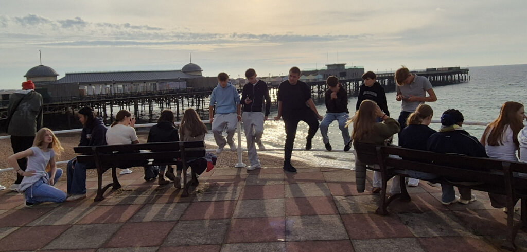 Für viele, eingeschlossen mich, war es das erste Mal in England. Dank unseres Busfahrers bekamen wir ein paar Einblicke über das Land, in dem wir uns fortbewegten. Selbst über schlichte Felder erzählte er uns Geschichten, die einen erstaunen ließen. Nach einer weiteren Stunde im Bus kamen wir endlich in der Stadt an, die wir für die nächsten 5 Tage unser Zuhause nennen würden – Hastings. Und wir machten direkt eine neue Bekanntschaft! James und sein Freund unterhielten uns mit ihren internationalen Witzen und versüßten uns diese lange Reise. Nun blieb uns nichts anderes übrig, als auf unsere Gastfamilien zu warten, und diese restliche Zeit verbrachten wir am Strand der kleinen Stadt.